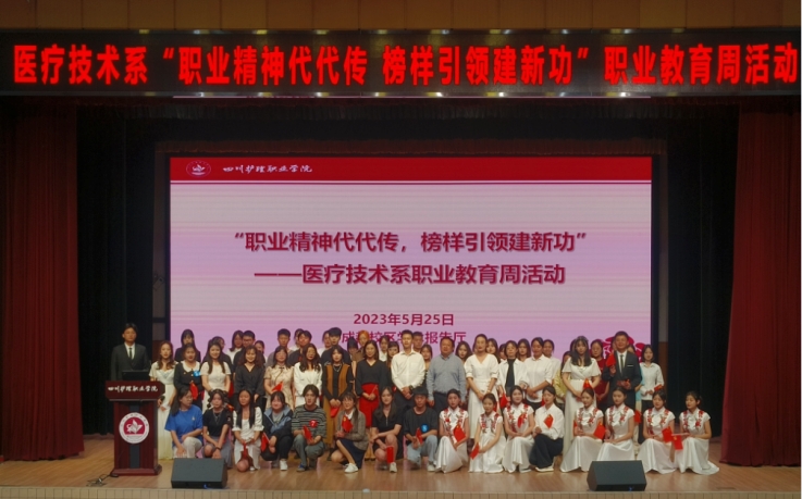 为深入贯彻落实党的二十大精神和习近平总书记关于职业教育的重要指示批示精神,传承技能成才、技能报国的时代风尚,营造“崇尚一技之长”的浓厚校园氛围,5月25日,医疗技术系在成都校区学术报告厅开展“职业精神代代传 榜样引领建新功”职业教育周活动。校外行业专家、医疗技术系全体师生参加活动。